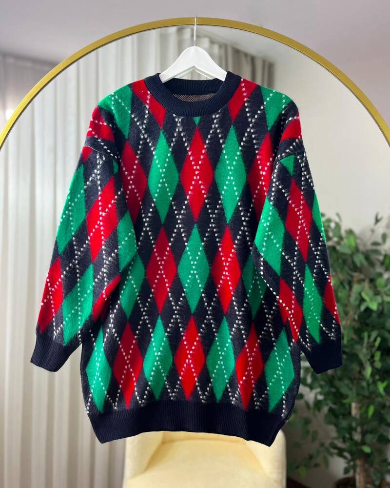 ARİYA BİSİKLET YAKA BAKLAVA ŞERİT DETAYLI TRİKO TUNİK 3023-03-LACİVERT - 1