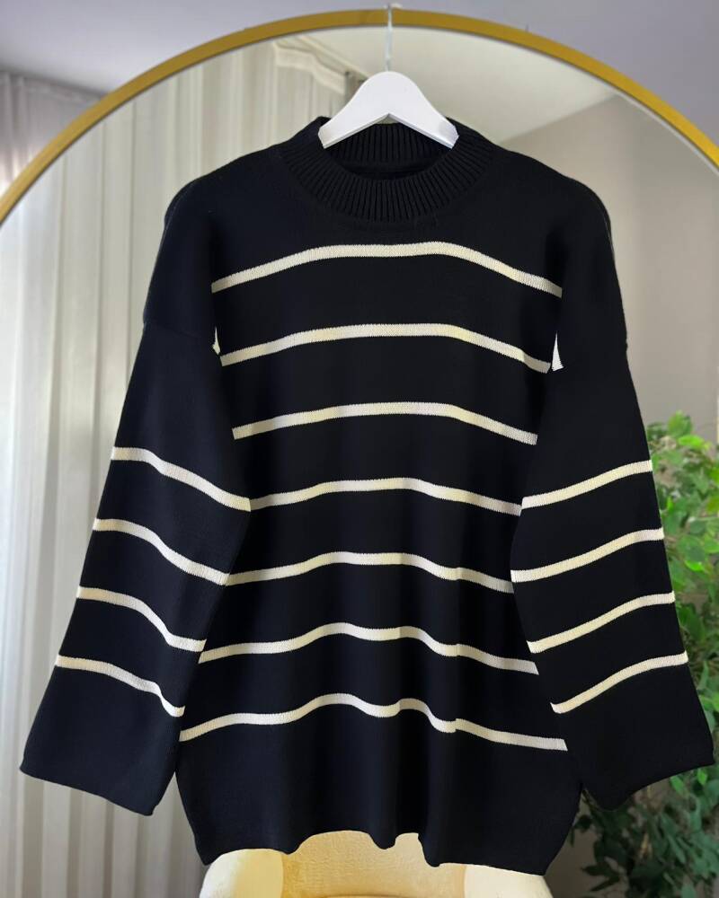 ERPA OVERSİZE ÇİZGİLİ SALAŞ TUNİK 3014-01-SİYAH