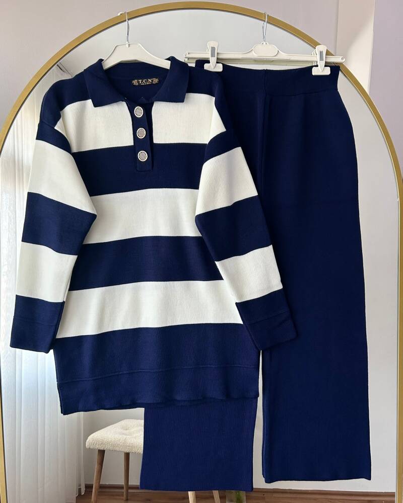 ERVA ÖNÜ DÜĞMELİ DOKUMA TRİKO TAKIM 1001-03-LACİVERT