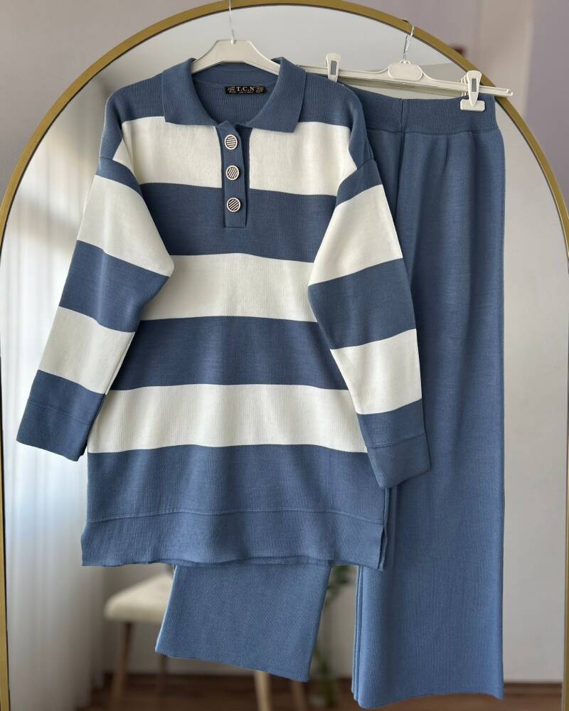 ERVA ÖNÜ DÜĞMELİ DOKUMA TRİKO TAKIM 1001-14-BEBE MAVİ