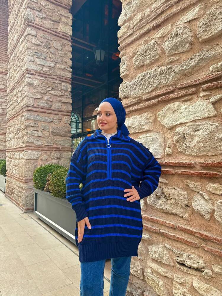HURE ÖNÜ FERMUARLI OMUZ DÜĞMELİ TRİKO TUNİK 3018-19-İNDİGO - 1