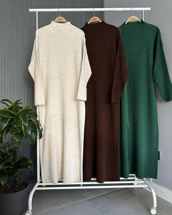 NEVA SALAŞ ÇİZGİLİ TRİKO ELBİSE 2002-02-BEJ