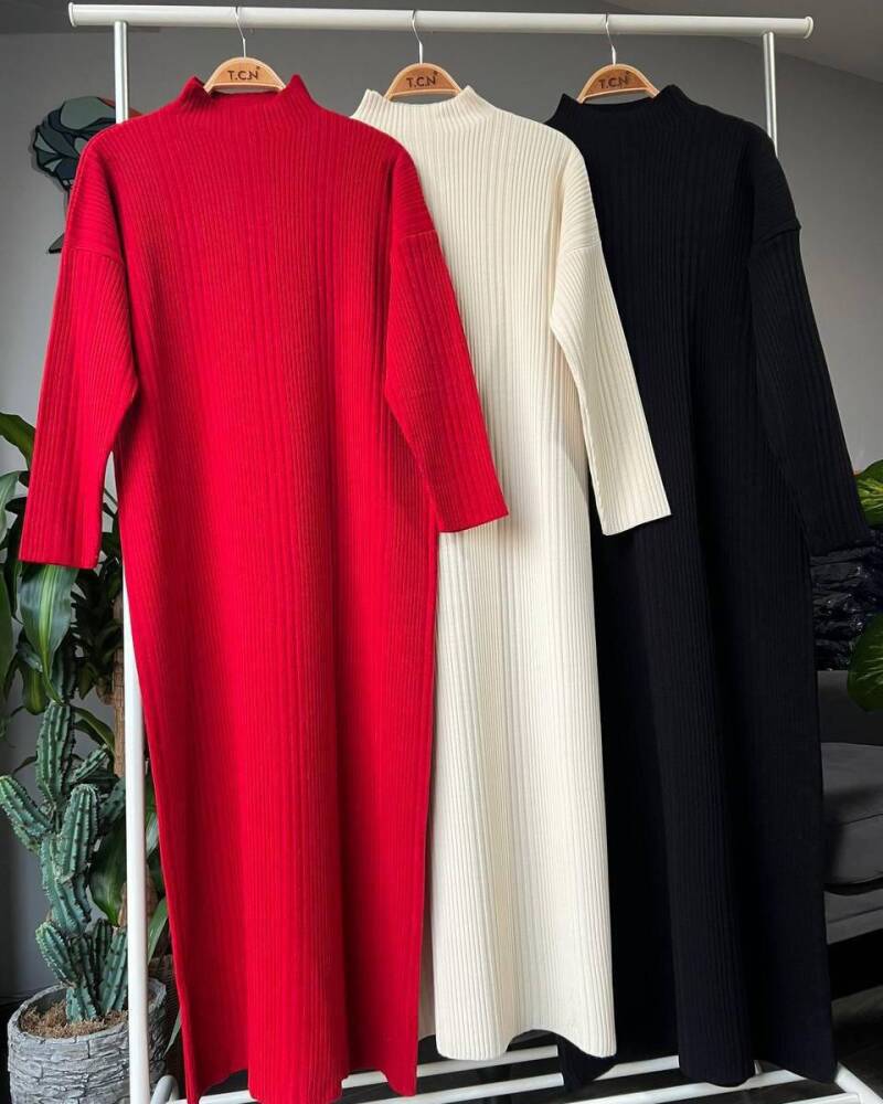 NEVA SALAŞ ÇİZGİLİ TRİKO ELBİSE 2002-04-BORDO