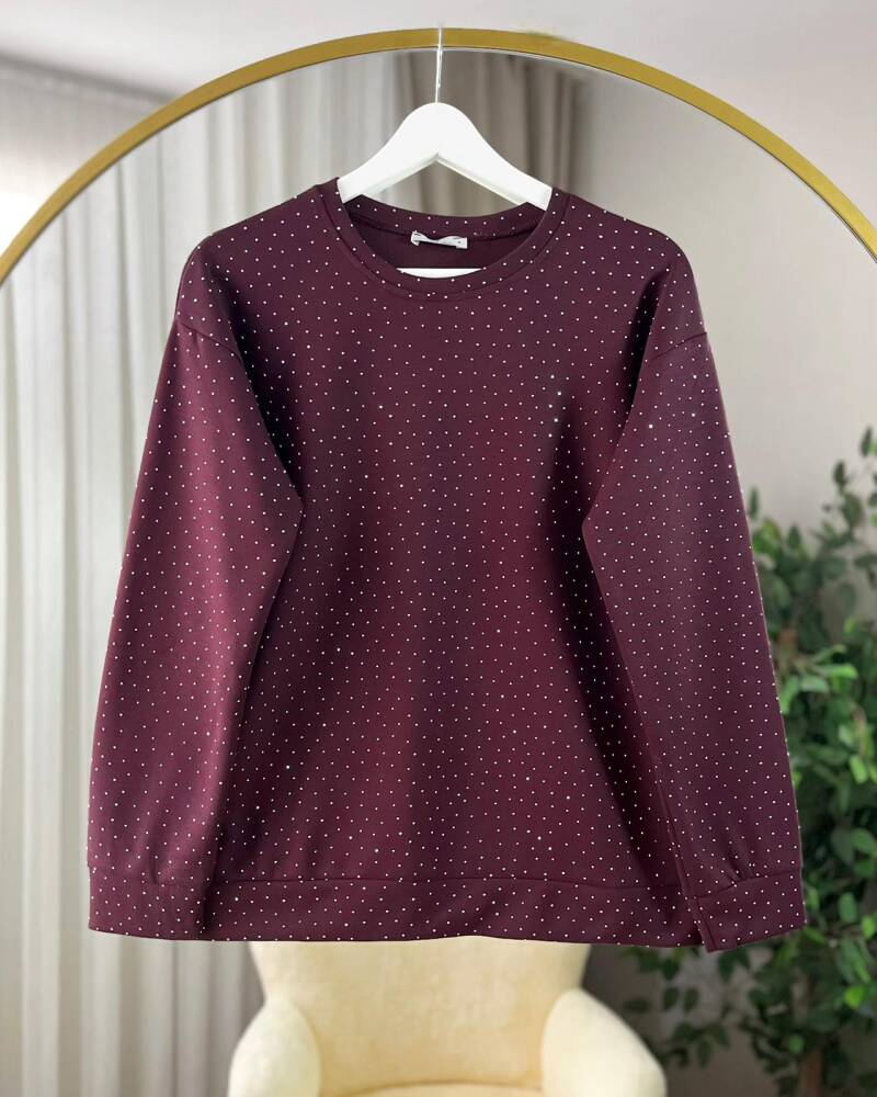 NYSA BİSİKLET YAKA TAŞ İŞLEMELİ OYSO TUNİK 3025-27-MÜRDÜM