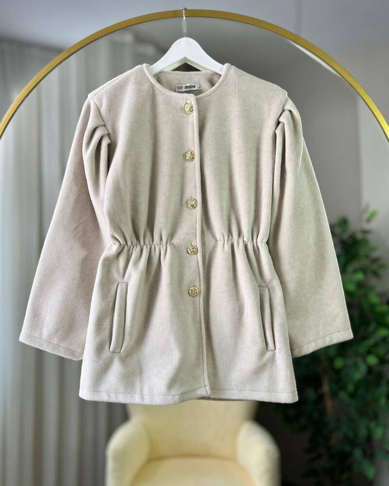 PARE ÖNÜ DÜĞMELİ BELİ BÜZGÜLÜ CEKET KAP 4006-07-EKRU