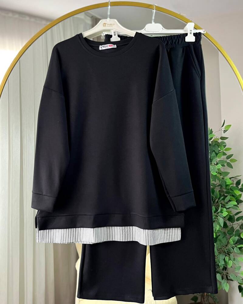 RONA GÖMLEK GARNİLİ BELİ LASTİKLİ OYSO TAKIM 1010-01-SİYAH