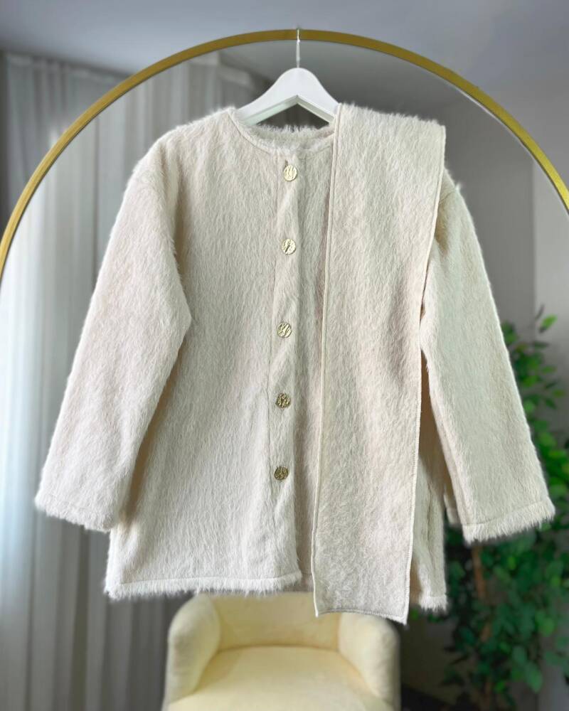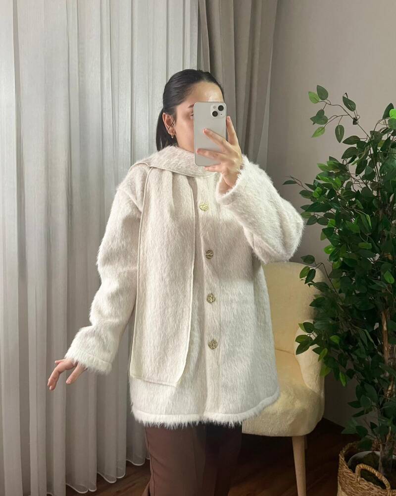 SOLA ÖNÜ DÜĞMELİ ATKILI CEKET KAP 4005-07-EKRU - 1SOLA ÖNÜ DÜĞMELİ ATKILI CEKET KAP 4005-07-EKRU - 2