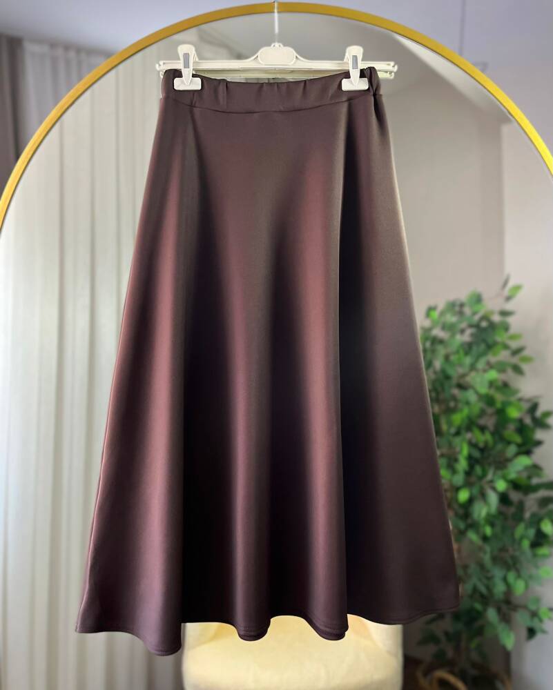 TURA BELİ LASTİKLİ KLOŞ ETEK 5004-13-KAHVE
