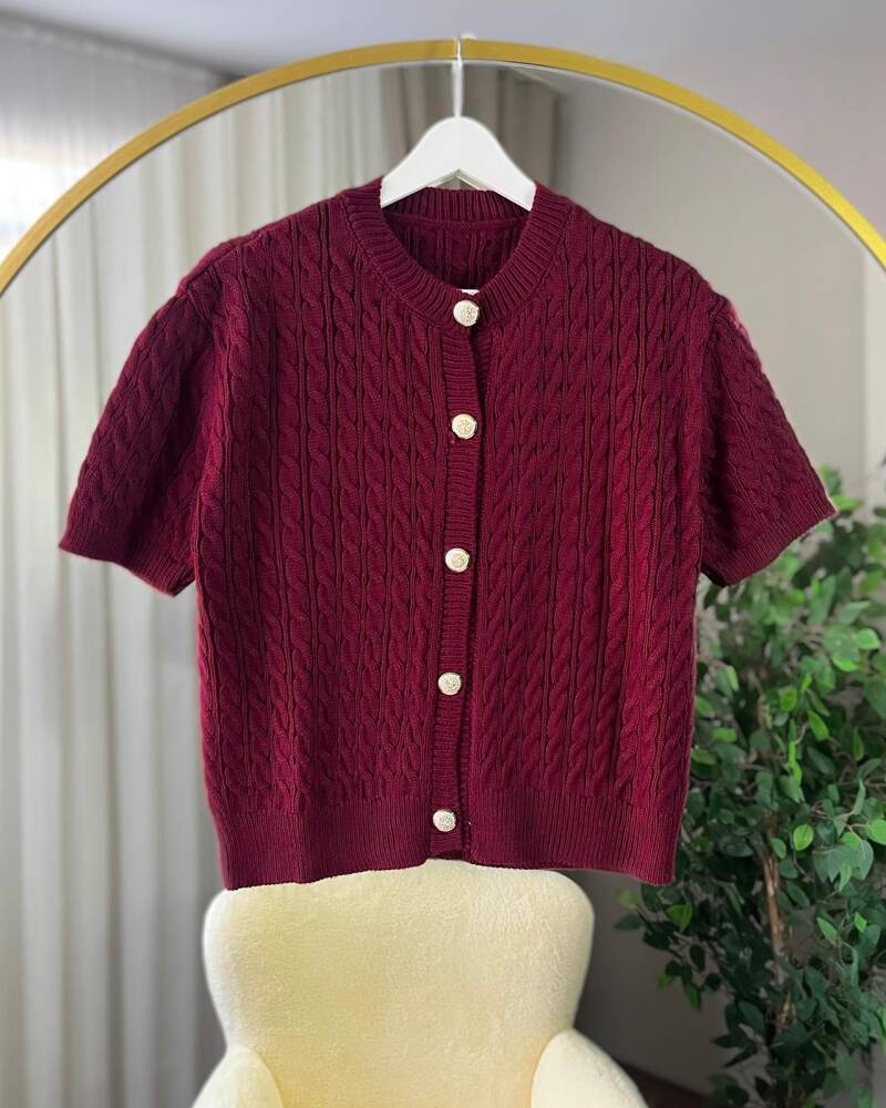 VERA DÜĞMELİ ÖRGÜLÜ TRİKO TUNİK HIRKA 3015-04-BORDO - 1