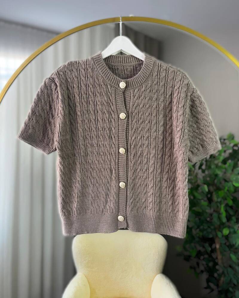 VERA DÜĞMELİ ÖRGÜLÜ TRİKO TUNİK HIRKA 3015-10-VİZON