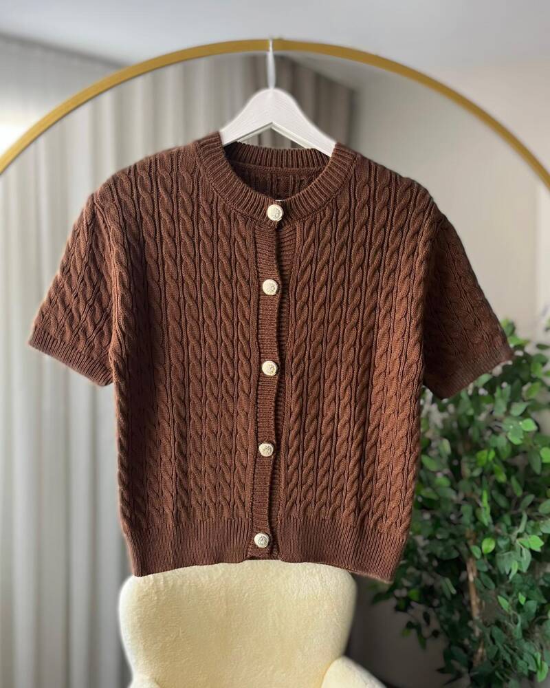 VERA DÜĞMELİ ÖRGÜLÜ TRİKO TUNİK HIRKA 3015-13-KAHVE