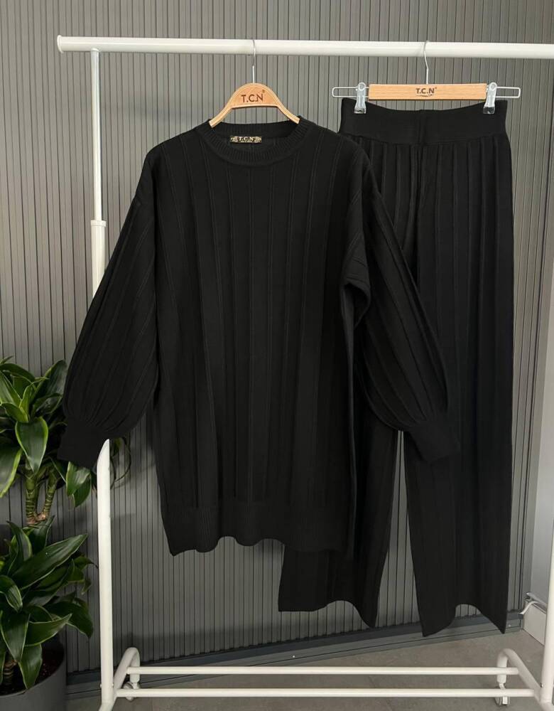 ZERSA FİTİLLİ BELİ LASTİKLİ TRİKO TAKIM 1002-01-SİYAH - 1